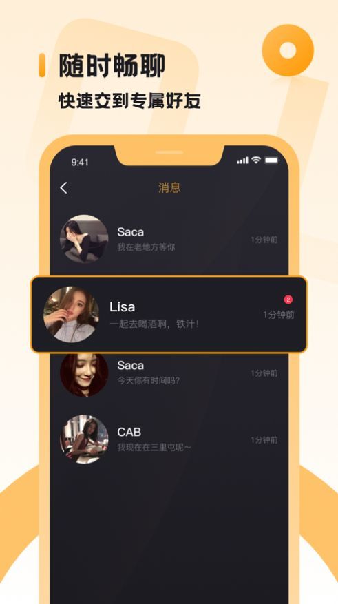 1、同城聊天:语聊发消息、传图片,让你通过声音、照片找到那个匹配的