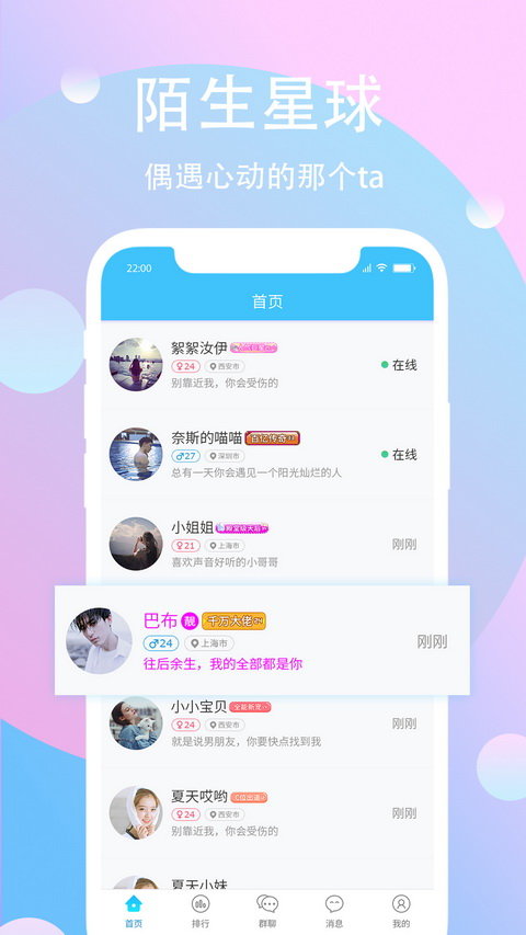 小甜蜜软件下载,让你在这款软件内更好的进行社交,并且偶遇自己心动的那个ta等。软件内,用户们可以进行甜蜜的私聊,并且的进行彼此的了解,也能在这款软件中看到很多趣味社交的方式,让自己更好的进行社交,认识更多陌生的朋友们等。软件内是非常安全的,用户们不用担心隐私的泄露。也不用担心各种问题的发生等。