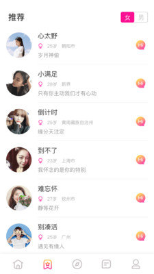 搭建单身男女聊天谈恋爱的桥梁,在这里找到属于自己的Ta。同城推荐;
