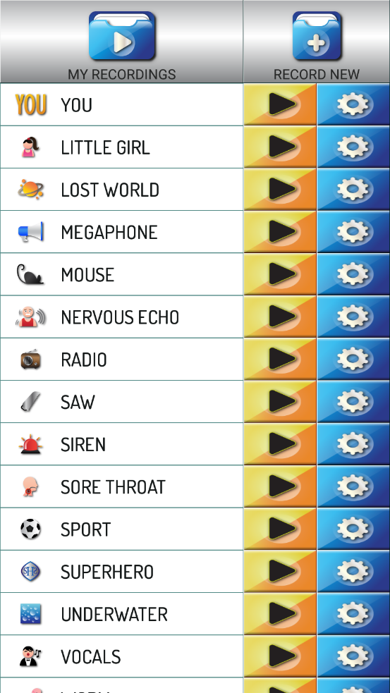 2.可以选择多种变声效果:爷爷、叔叔、小孩、幽灵、机器人...你只需要轻轻改变你的声音,让你成为一个拥有自己的BGM的潮人