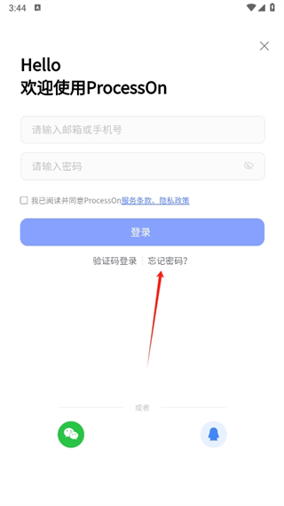 2、点击“忘记密码”;