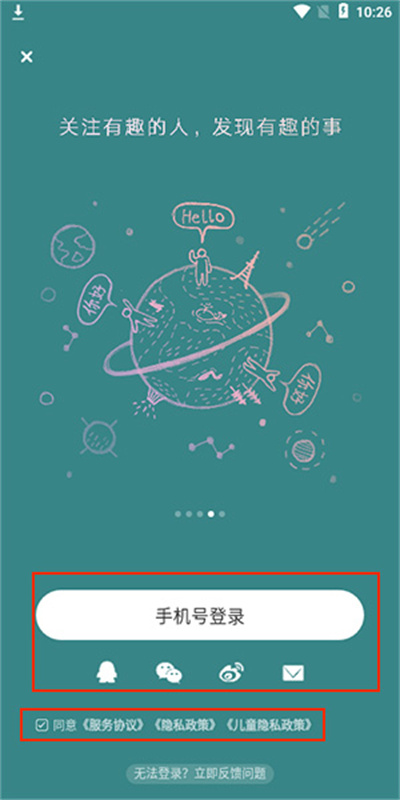 1.进入软件后用户可以选择QQ、微信、微博等方式直接登录软件。