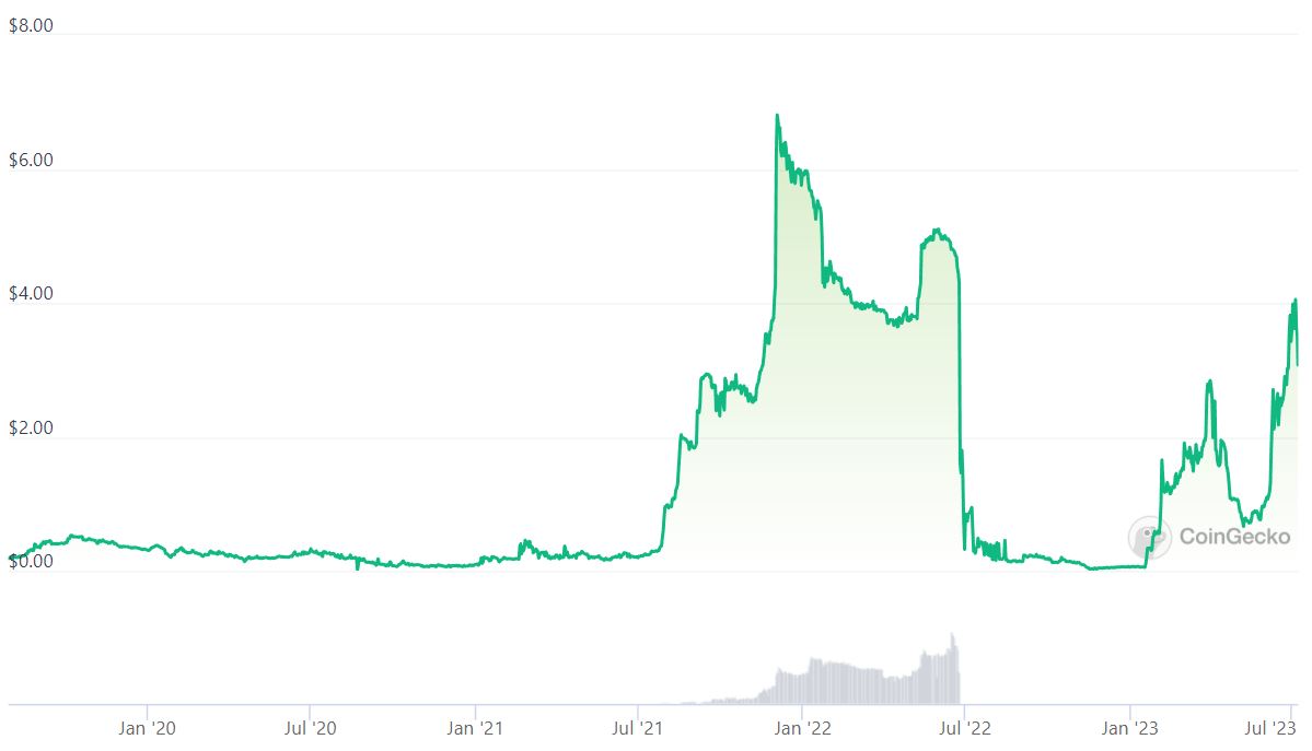 FLEX于 2023 年 5 月宣布过渡到破产索赔交易所 OPNX。该代币的价格于 6 月 27 日达到 13 个月高点 4.37 美元。
